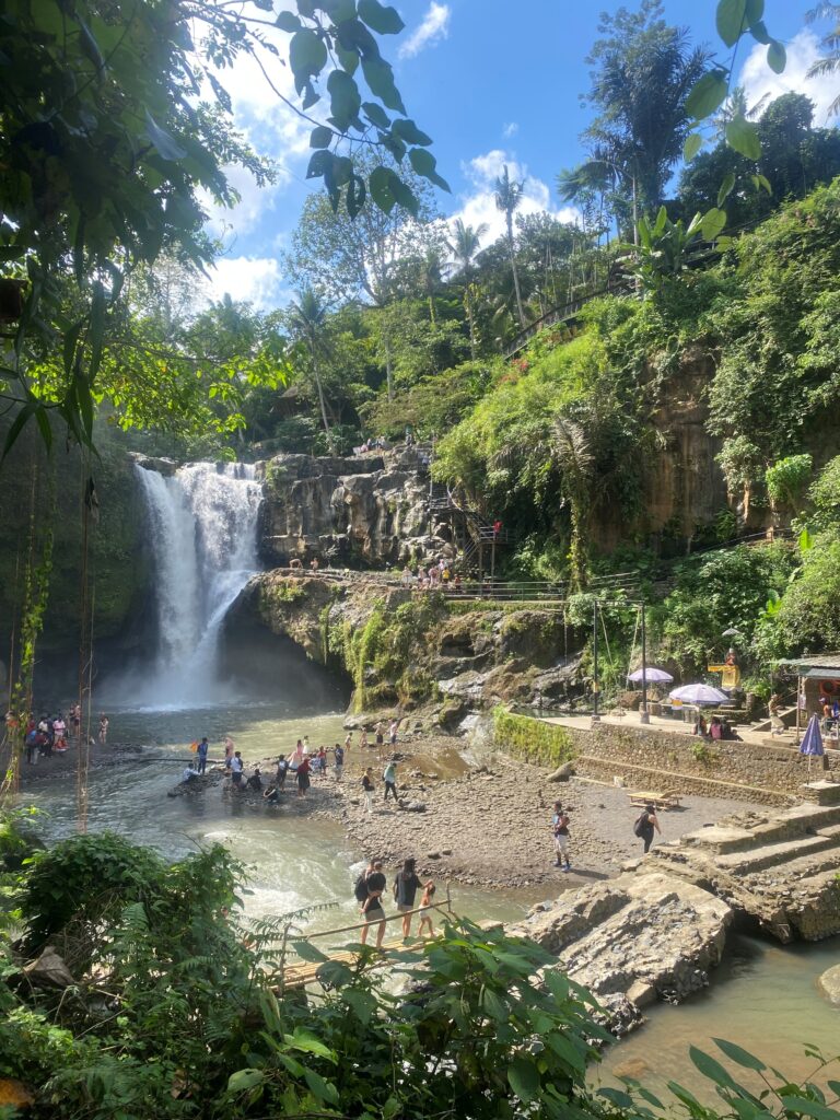 Kanto Lampo is misschien wel de meest Instagram‑waardige waterval bij Ubud. De waterval stroomt in meerdere lagen langs een rotswand naar beneden, waardoor een soort natuurlijke trappenstructuur ontstaat. Je kunt er klimmen over de rotsen (wel voorzichtig: ze zijn glad!) en poseren in de stroming voor supervette foto’s. Ga er zo vroeg mogelijk naartoe, zodat je nog een beetje voor de drukte bent.