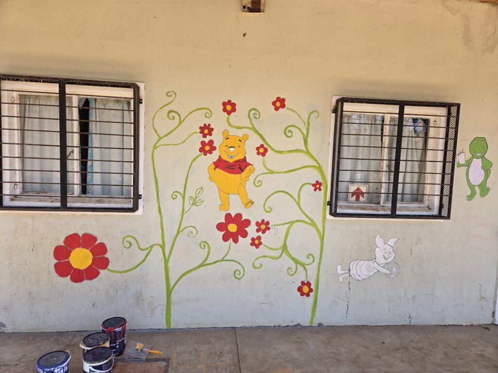 Ook zijn er twee scholen waarmee ze samenwerken. Hier gingen we regelmatig een ochtend heen. Het is dan ook erg leuk om te zien hoe het werkt. We zijn druk bezig geweest om de kerst cadeautjes klaar te maken en we hebben de muren van de school wat opgevrolijkt met een schildering. De werkzaamheden vond ik allemaal leuk om te doen! Natuurlijk heb je soms een paar dingen die je wat minder leuk vindt, maar dat is altijd zo. Het was in elk geval super gevarieerd werk.