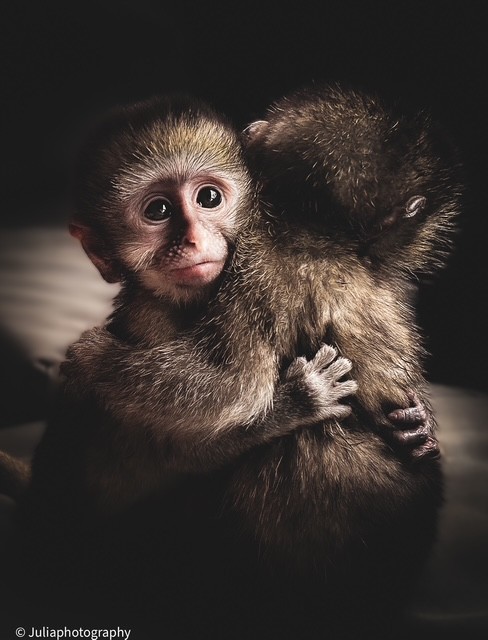 De apen houden je vast en met hun kleine sterke handjes ‘kleden ze je uit’. Uit nieuwsgierigheid trekken ze aan kleding en ritjes. Dat betekent dat ze zich veilig bij je voelen. Hiernaast wordt je gegroomed: het weghalen van stof, haartjes, insectjes of gewoon doen alsof. Je wordt niet alleen geaccepteerd, maar op apenniveau liefgehad. Een liefdestaal die letterlijk soms de haren bij je uittrekt, dus is dus echter een eer : ) Tuurlijk, ze plassen en poepen per ongeluk op je en ze kunnen bijten. Je maakt ook lange dagen. Maar maakt het uit? Nee, totaal niet. Dat vergeet je zo weer. Hetgeen wat je ervoor terugkrijgt is te waardevol en te belangrijk. De allerkleinsten hebben veel warmte en liefde nodig, dus als je dan een halfuurtje niks doet, dan ga je niet ‘niks doen’, maar knuffel je vanzelf een babyaapje.