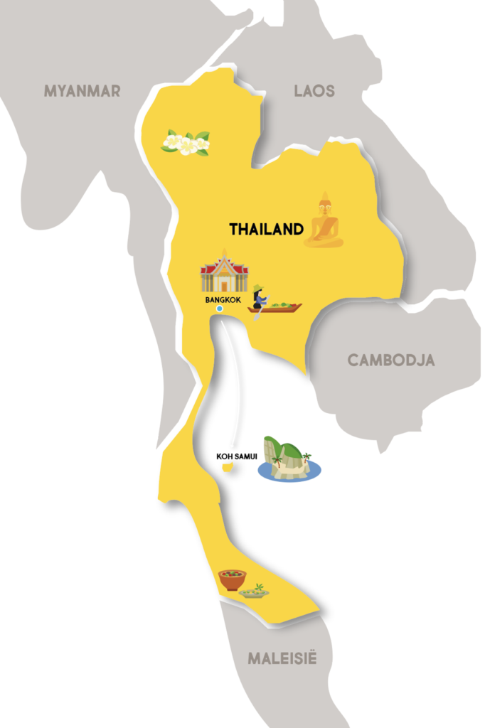 Thailand is een kleurrijk en tropisch land in Zuidoost-Azië, bekend om z’n vriendelijke mensen, heerlijke eten en indrukwekkende natuur. Van bruisende steden tot rustige dorpjes, van jungle tot bountystranden, Thailand heeft het allemaal. De sfeer is relaxed en gastvrij. Thai staan bekend om hun glimlach, respectvolle omgangsvormen en liefde voor lekker eten. Je vindt hier tempels, markten, olifanten, stranden, streetfood en zonsondergangen die je niet snel vergeet. Engels wordt op veel plekken gesproken, vooral in toeristische gebieden, maar je leert al snel een paar Thaise woorden om contact te maken. Denk aan sawadee ka (hallo) en khop khun ka (dankjewel).