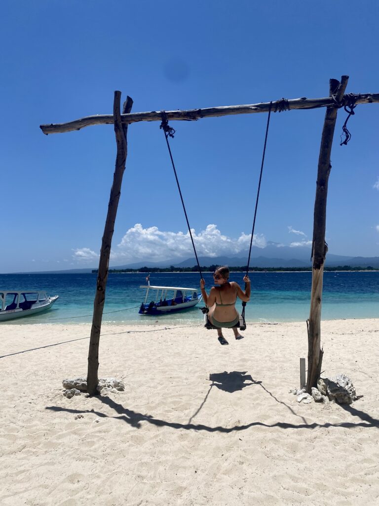 Tijdens de Island Hopper tour breng je ook een bezoek aan Gili Trawangan, het grootste en gezelligste eiland van de drie Gili-eilanden. Gili T — zoals het vaak genoemd wordt — staat bekend om zijn relaxte eilandsfeer, hagelwitte stranden en het helderblauwe water waar je zo in wilt duiken. Het eiland is autovrij, waardoor je overal naartoe wandelt of fietst. Dat geeft meteen die typische laid‑back eilandvibe. Gili Trawangan is een paradijs voor snorkelliefhebbers: de kans is groot dat je hier zeeschildpadden spot vlak voor de kust! Je kunt er daarnaast heerlijk zwemmen, suppen of gewoon op het strand relaxen met een verse kokosnoot. ’s Avonds komt het eiland tot leven met gezellige strandbarretjes, sfeervolle restaurants, feestjes en zonsondergangen waar je stil van wordt. Het eiland ligt naar Gili Meno en Gili Air, waar je ook een bezoekje aan zult brengen tijdens de snorkeltour. Het is de perfecte plek om even te genieten van strand, zee en eilandrust. Een heerlijke afwisseling tijdens je reis!
