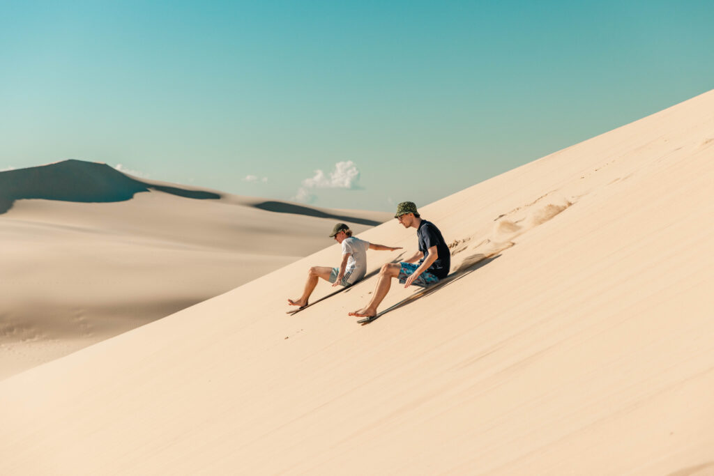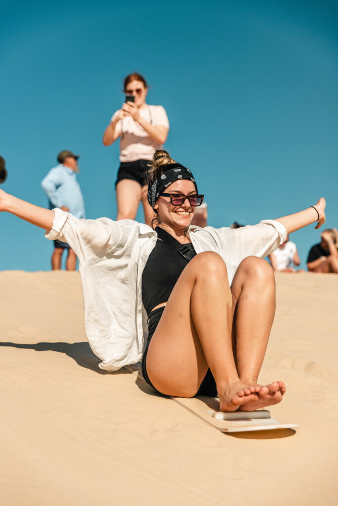Vandaag staat compleet in het teken van avontuur! Met een 4WD rijd je de enorme sand dunes in, waar je je uitleeft tijdens het sandboarden — razendsnel de hellingen af, met spectaculaire uitzichten om je heen. Daarna trek je de natuur in voor een begeleide bushwalk door het prachtige Tomaree National Park, een gebied vol unieke flora, fauna en indrukwekkende kustlandschappen. ’s Avonds geniet je van een gezellige BBQ‑maaltijd en wandel je daarna met de groep naar het strand voor een magische afsluiter: een nacht onder de sterren. Een perfecte combinatie van actie, natuur en ultieme Aussie vibes.