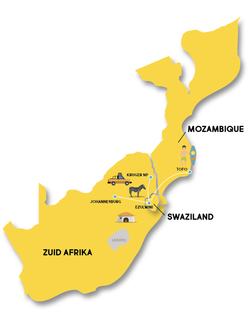 Tijdens deze reis ontdek je drie totaal verschillende landen in Afrika; Zuid-Afrika, Swaziland en Mozambique. Een perfecte mix van avontuur, betekenis en ontspanning.
